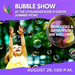 Enjoy the warmth of our community, along with live music by Paul Strolia, authentic Lithuanian food from Grand Duke’s Restaurant, Dadu Lithuanian ice cream, and even Lithuanian beer! The event begins at noon, but be sure to bring your kids or grandkids for the 1pm Bubble Show. We encourage the little ones to dress as their favorite princess or superhero.