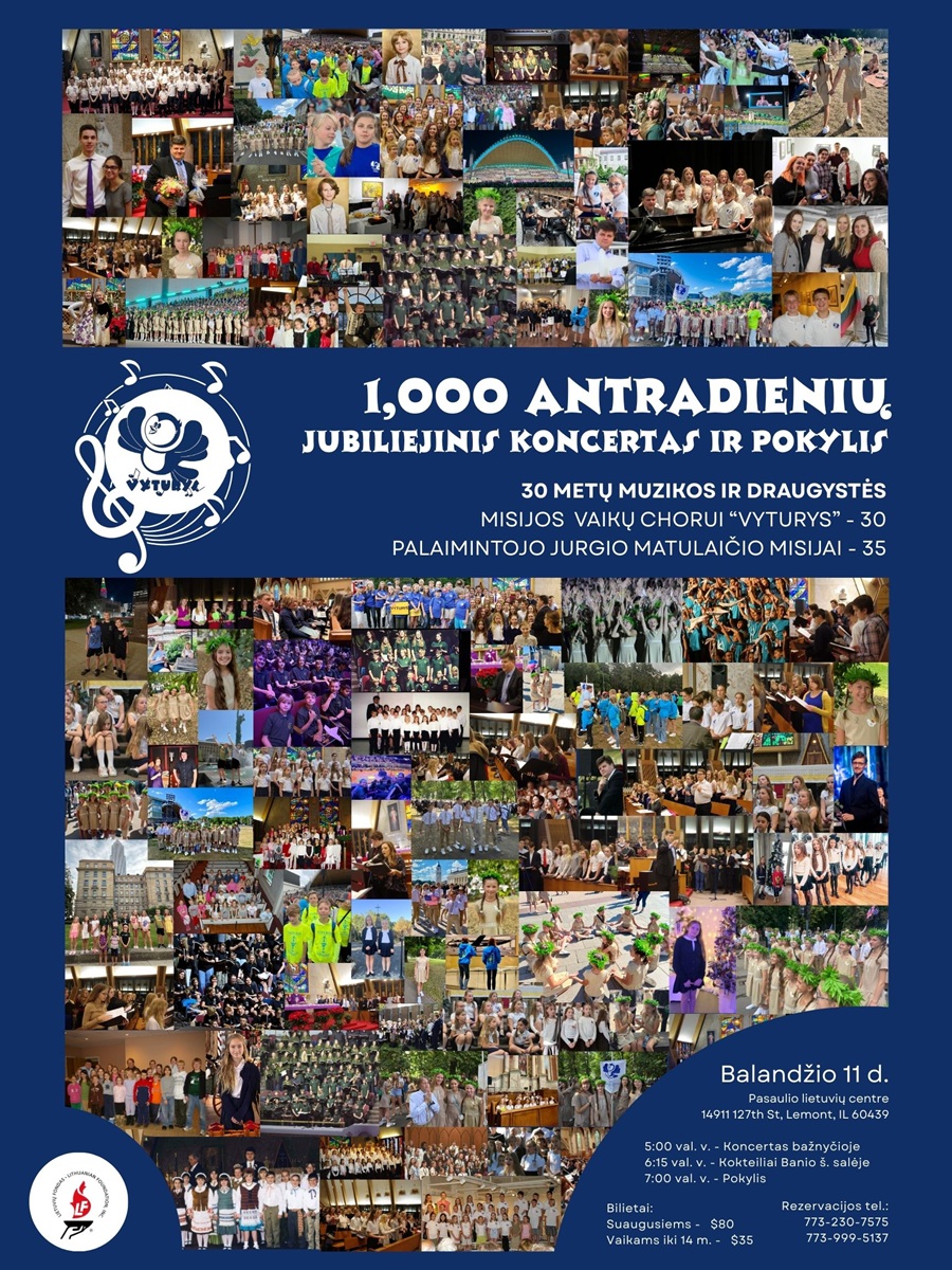 You are warmly invited to a special anniversary concert and festive gala celebrating the children’s choir “Vyturys”! This evening we will mark two remarkable milestones: the 30th anniversary of the “Vyturys” Choir and the 35th anniversary of the Blessed Jurgis Matulaitis Mission. “1,000 Tuesdays” represents 30 years of music, hymns, friendship, and community under the Mission’s roof — hundreds of voices, thousands of moments, and memories that will last a lifetime.