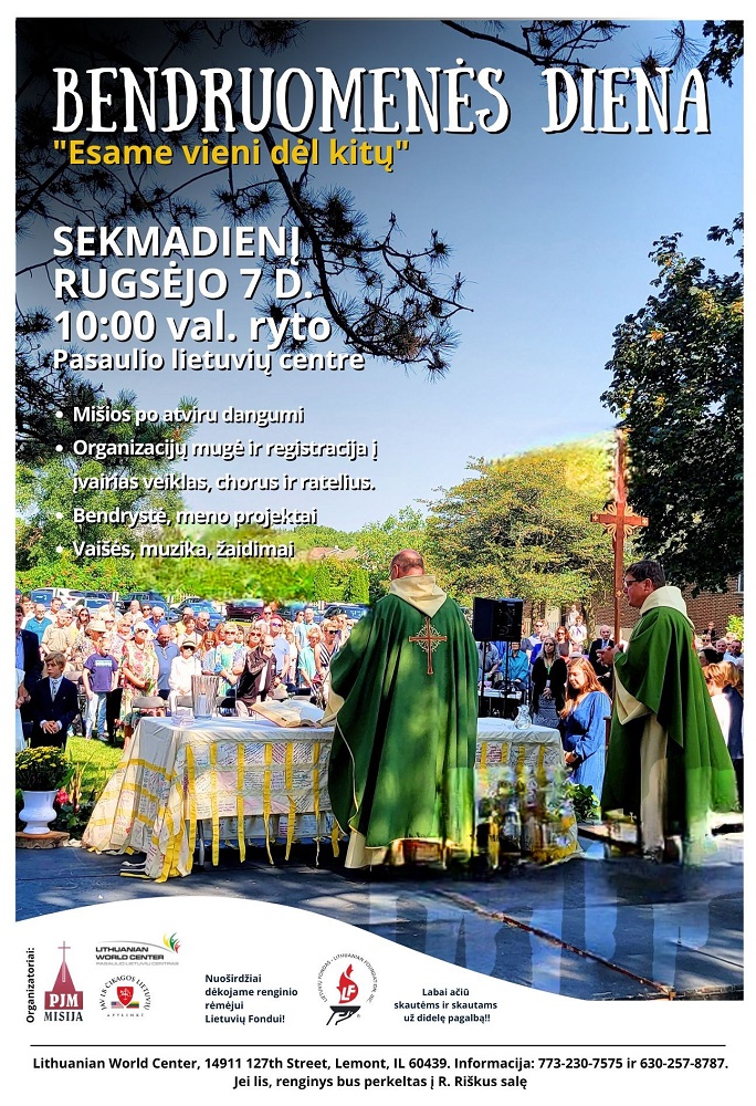 We invite everyone to the most beautiful community event of the year. This is the one day of the year for everyone to be together! There will be an outdoor Mass, an organization fair and registration for Lithuanian activities and clubs, a family sports festival, refreshments, games, and more.