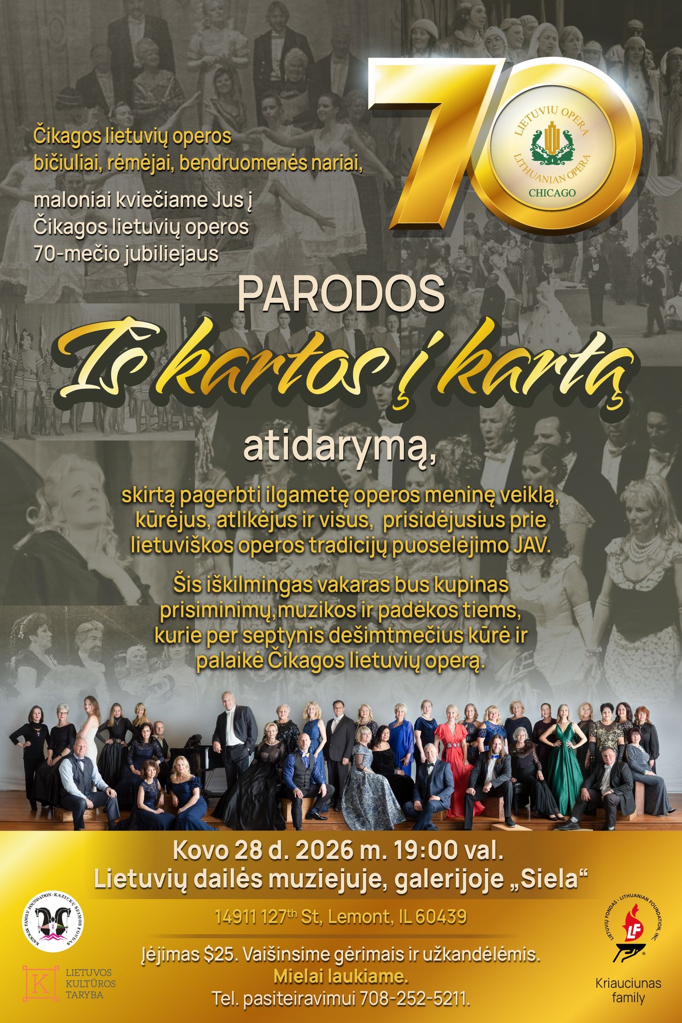 For 70 years, the Chicago Lithuanian Opera has continued its work, bridging generations, nurturing Lithuanian identity, and demonstrating that opera can thrive far from the homeland yet close to the heart.