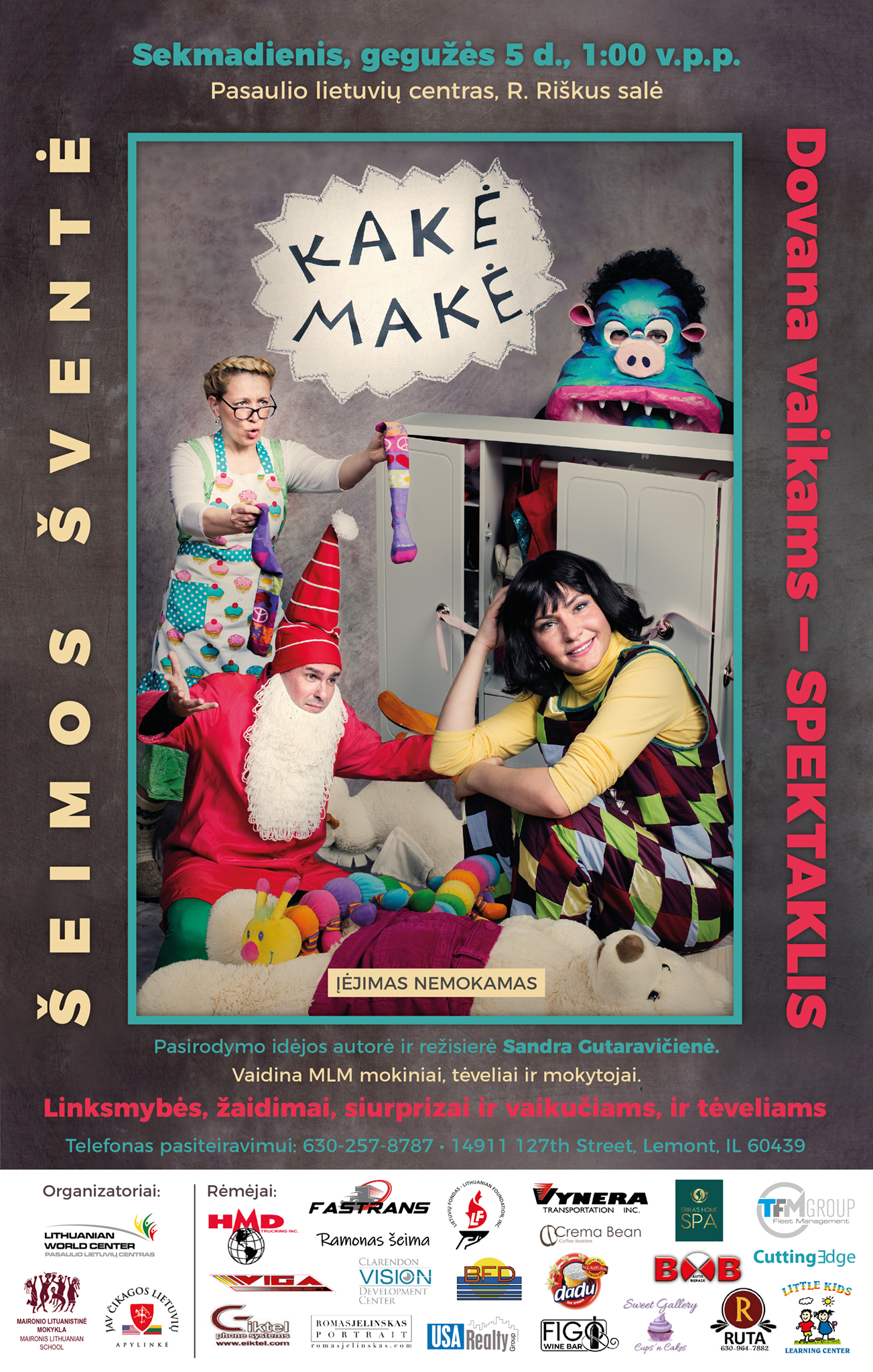 Bring the whole family to the big gym for an afternoon of fun, games, and surprises!  Director Sandra Gutaravičienė will present the play, “Kakė Makė”, acted out by Maironis school children, parents and teachers.