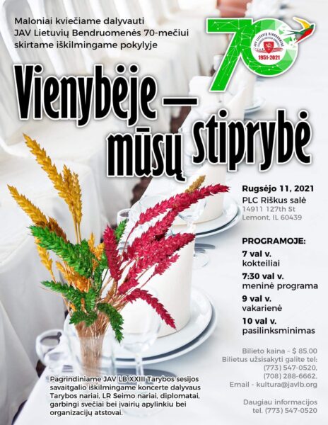 Join the Lithuanian American Community as they celebrate 70 years! Enjoy cocktails, dinner, and entertainment.