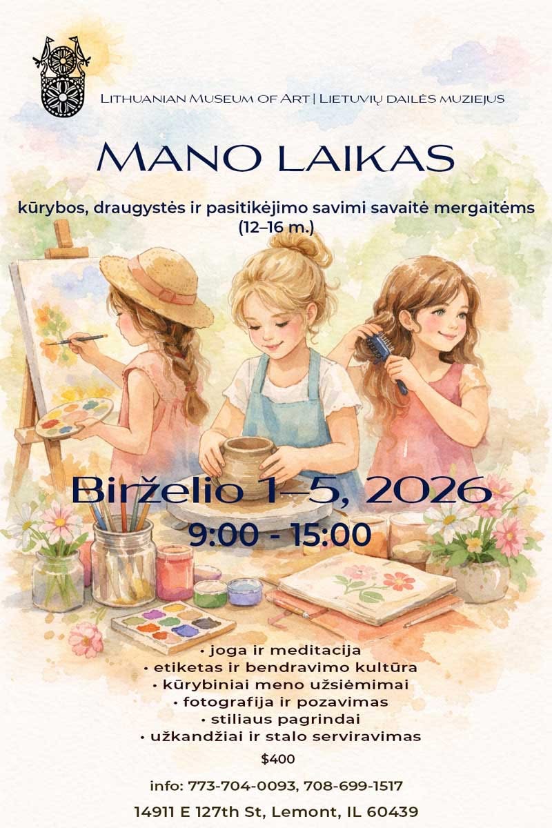 Tai bus laikas kūrybai, draugystei ir pasitikėjimo savimi stiprinimui. Stovykla skirta 12–16 metų mergaitėms. Dalyvio mokestis – $400. Registracija: (773) 704-0093 arba (708) 699-1517.