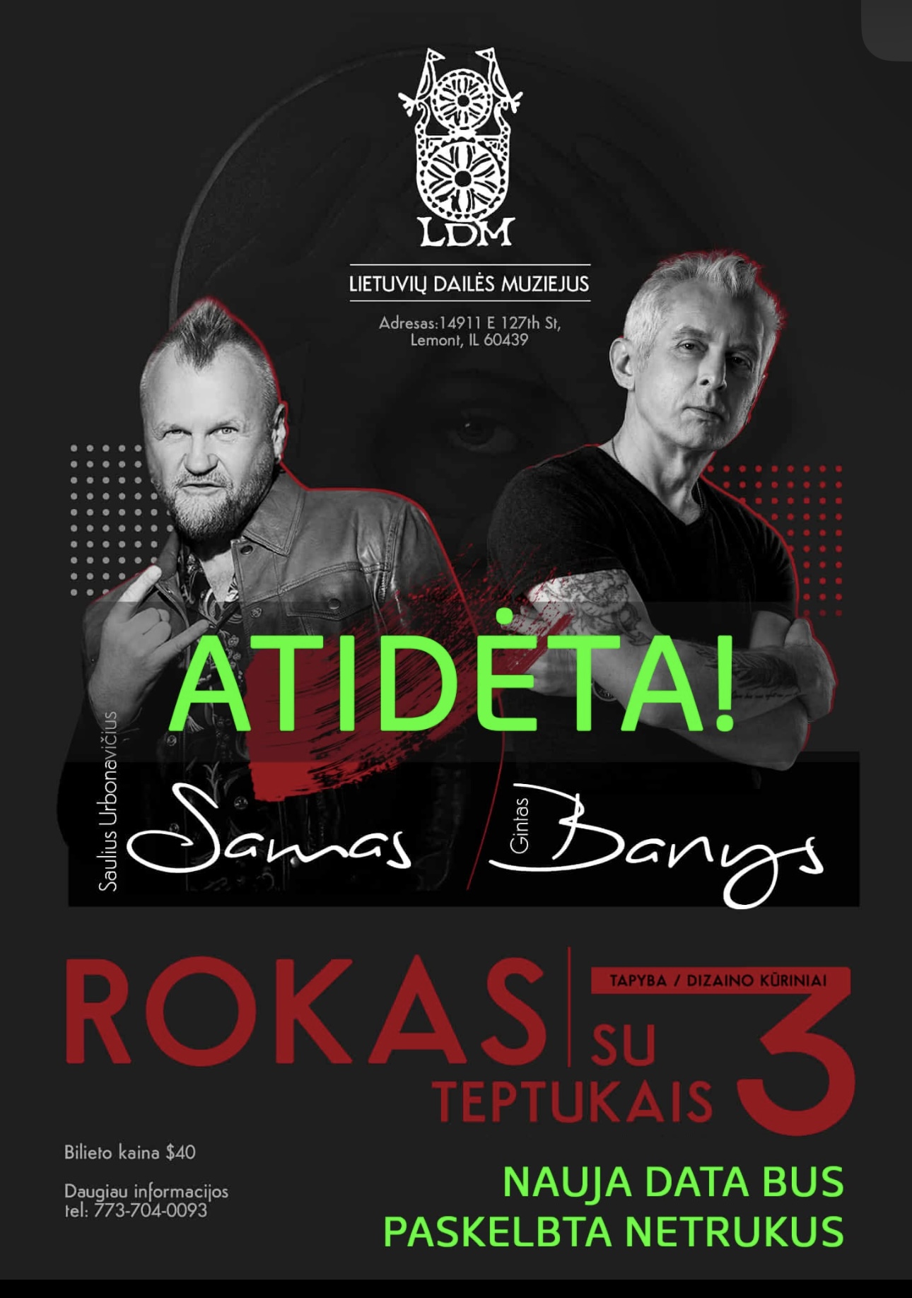 Kviečiame į ypatingą parodą, kurioje susijungs rokas ir dailė! Savo darbus pristatys Saulius Urbonavičius Samas ir Gintas Banys.