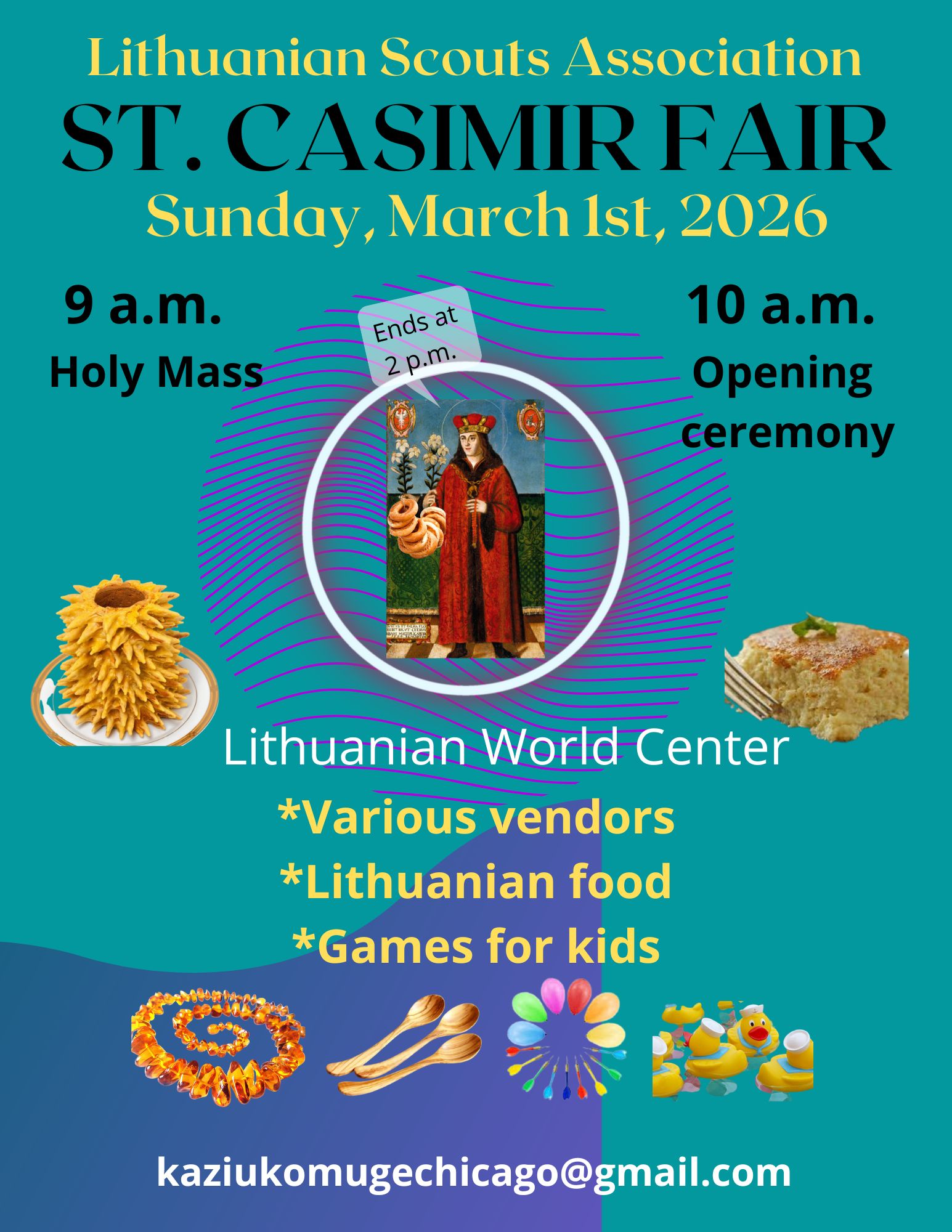 Come celebrate St. Casimir’s Fair, hosted by the Lithuanian Scouts! The event will feature a variety of vendors, fun games for kids, delicious Lithuanian food, and sweet treats. For more information, email [email protected].
