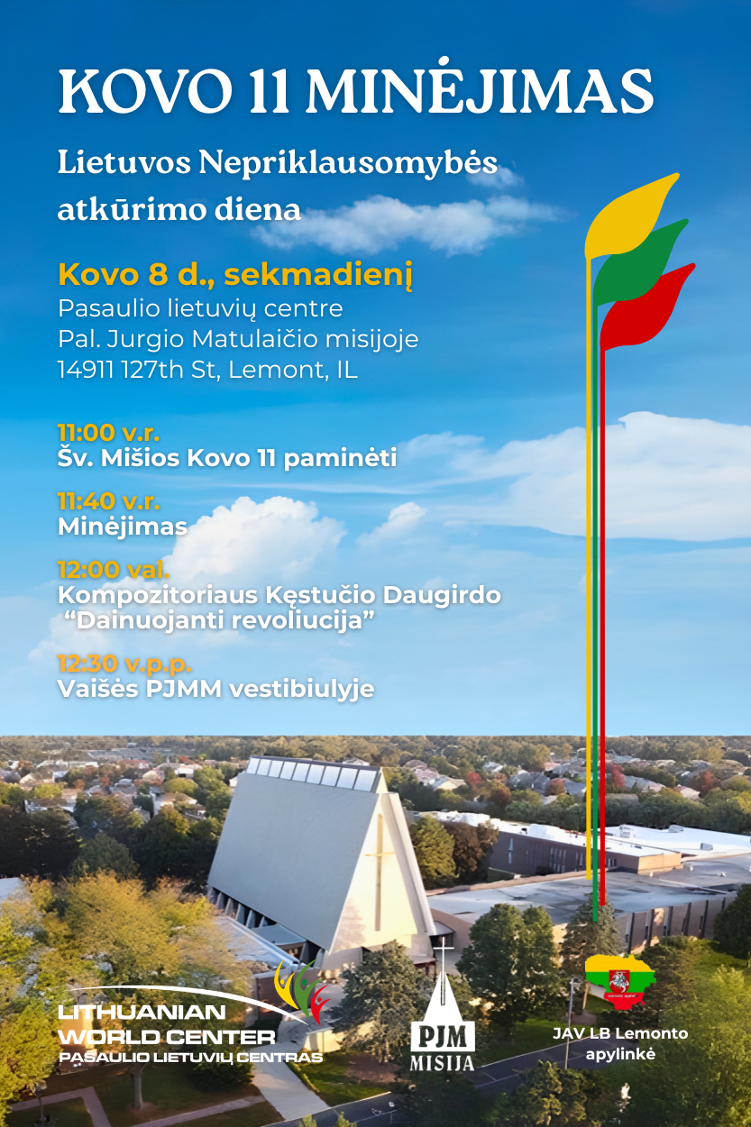 Iškovota Lietuvos laisvė mums suteikė galimybes. Atvėrė sienas, suteikė galimybes keliauti, gyventi, ten, kur norime. Todėl šiandien, gyvendami čia, Amerikoje, kartu atšvęskime mūsų Laisvės dieną. Kviečiame Jus į Kovo 11-osios minėjimą.