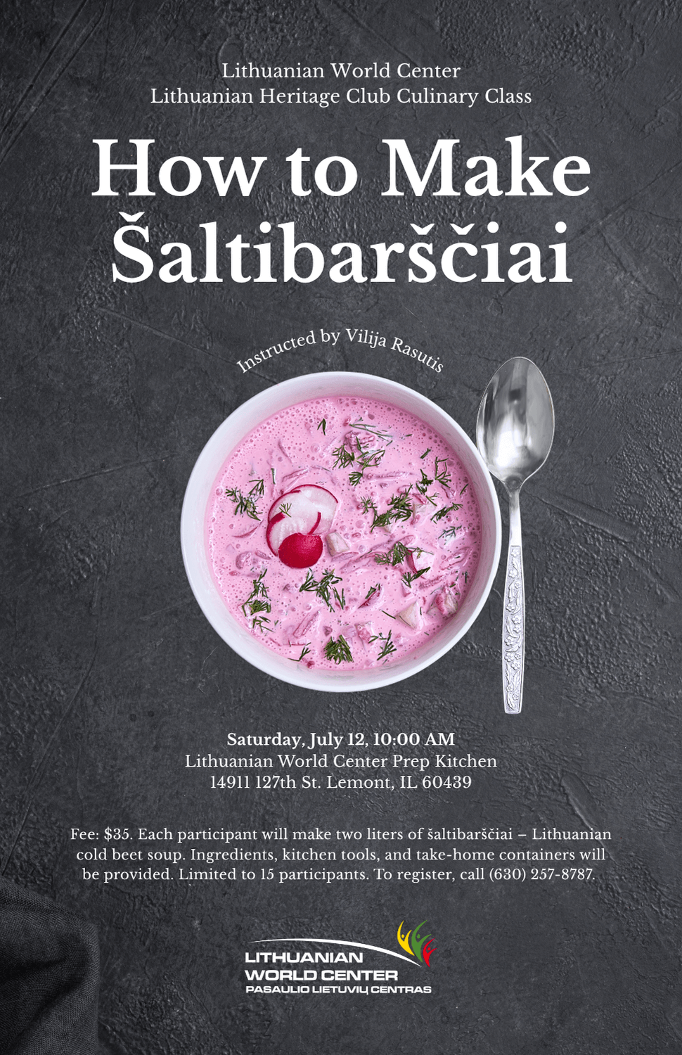 The Lithuanian World Center continues its mission of helping you explore and connect with your Lithuanian roots. Join us for a special hands-on culinary class during which you will learn how to make šaltibarščiai — Lithuanian cold beet soup!