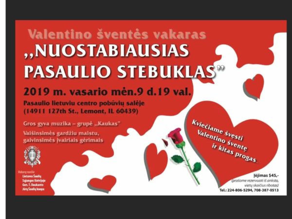 Celebrate Valentine’s Day with the Lithuanian Šiauliai. Enjoy delicious food and drink, and live music by the group “Kaukas”. Entrance Fee: $45