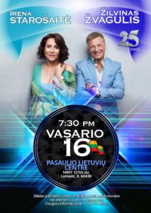 Celebrating 25 years on the stage, Žilvinas Žvagulis and Irena Starosaitė will be performing in the R. Riškus Hall at the Lithuanian World Center.